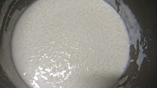 Mittaa maito, 2 dl kermaa, ½ dl sokeria ja vaniljasokeri kattilaan. Kuumenna seos sekoitellen lähes kiehuvaksi. Nosta kattila liedeltä ja jätä maustumaan.